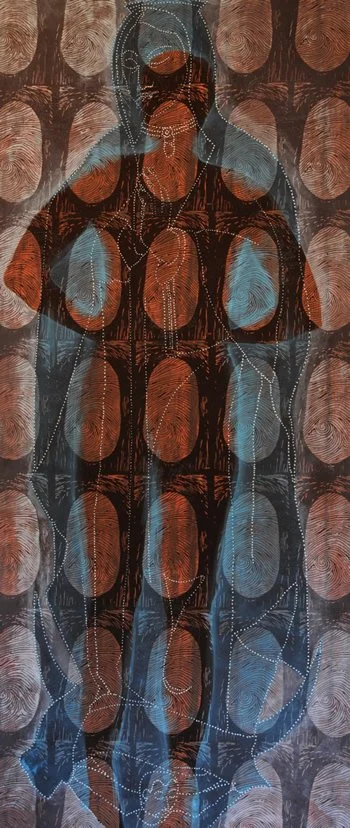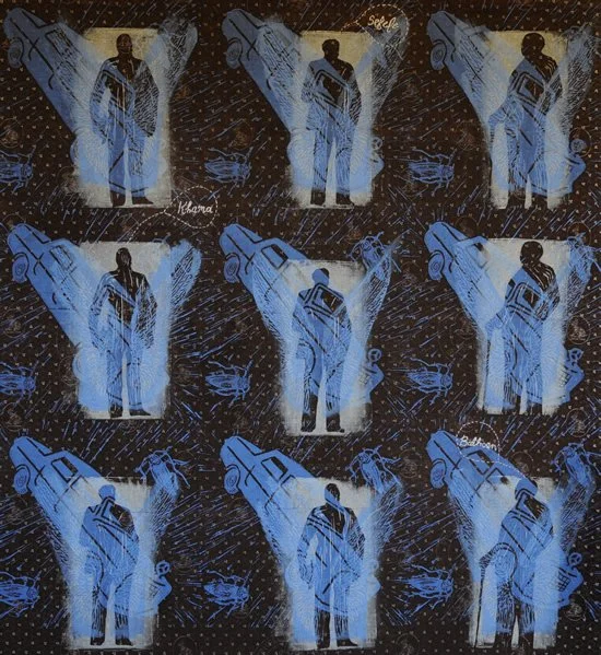 Ann Gollifer Exhibited at the Everard Read Gallery, Johannesburg, July 2009. All works are on German Print, over laid with screen, lino ink, acrylic, oil and cotton thread.