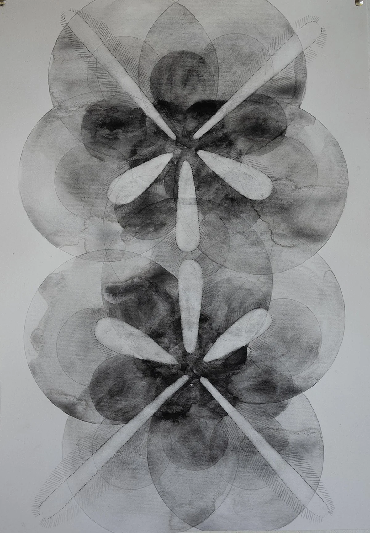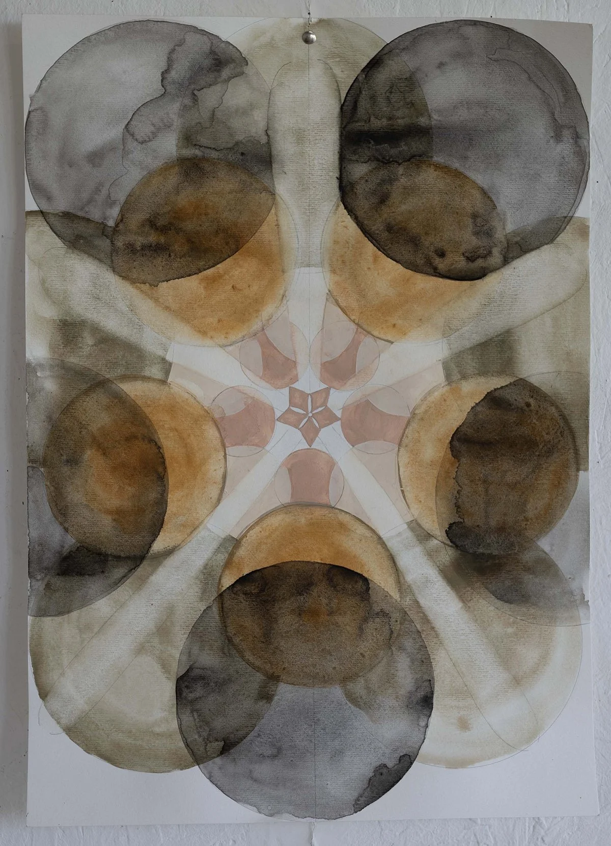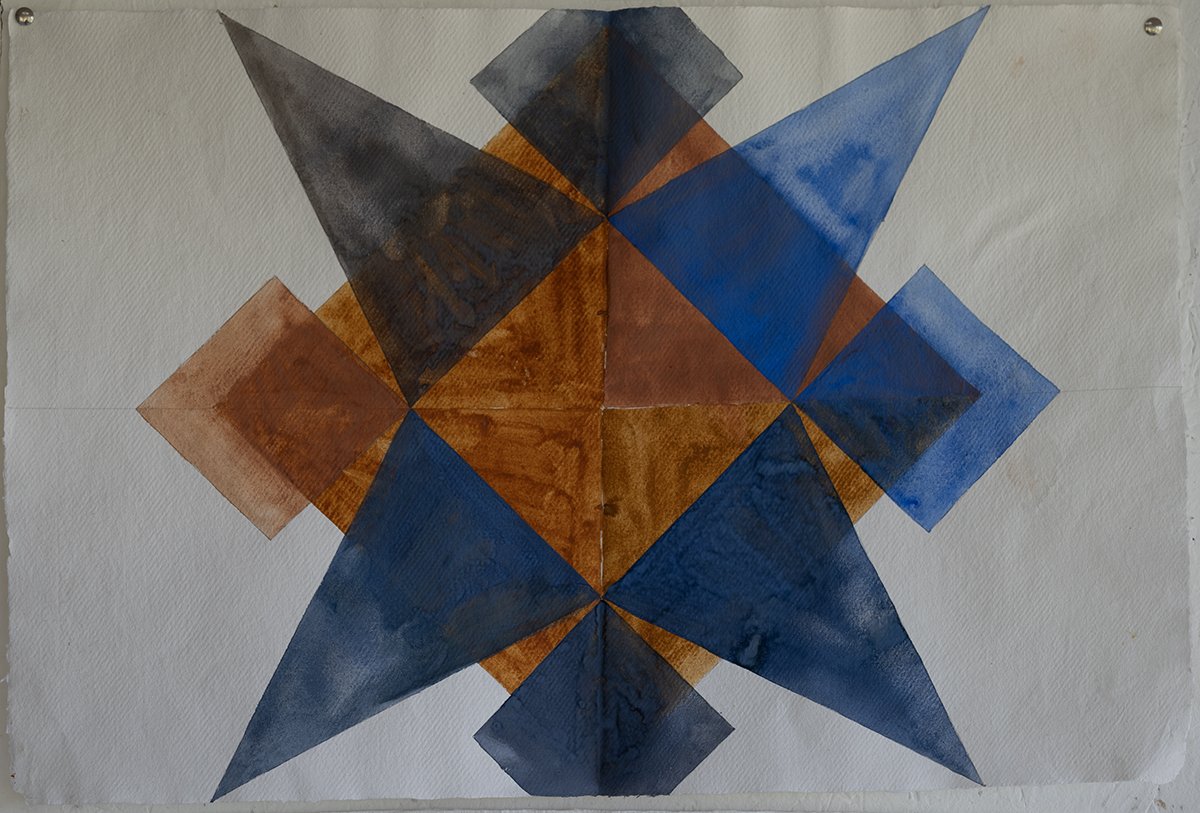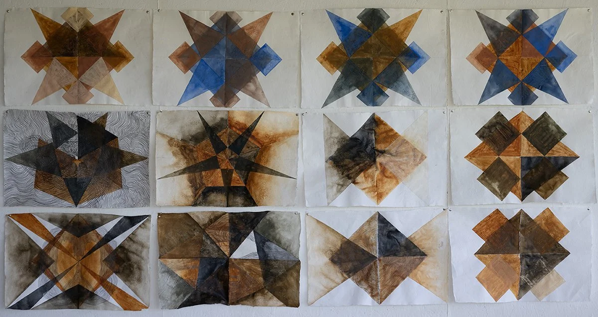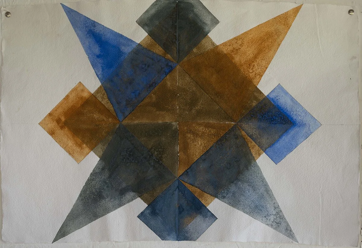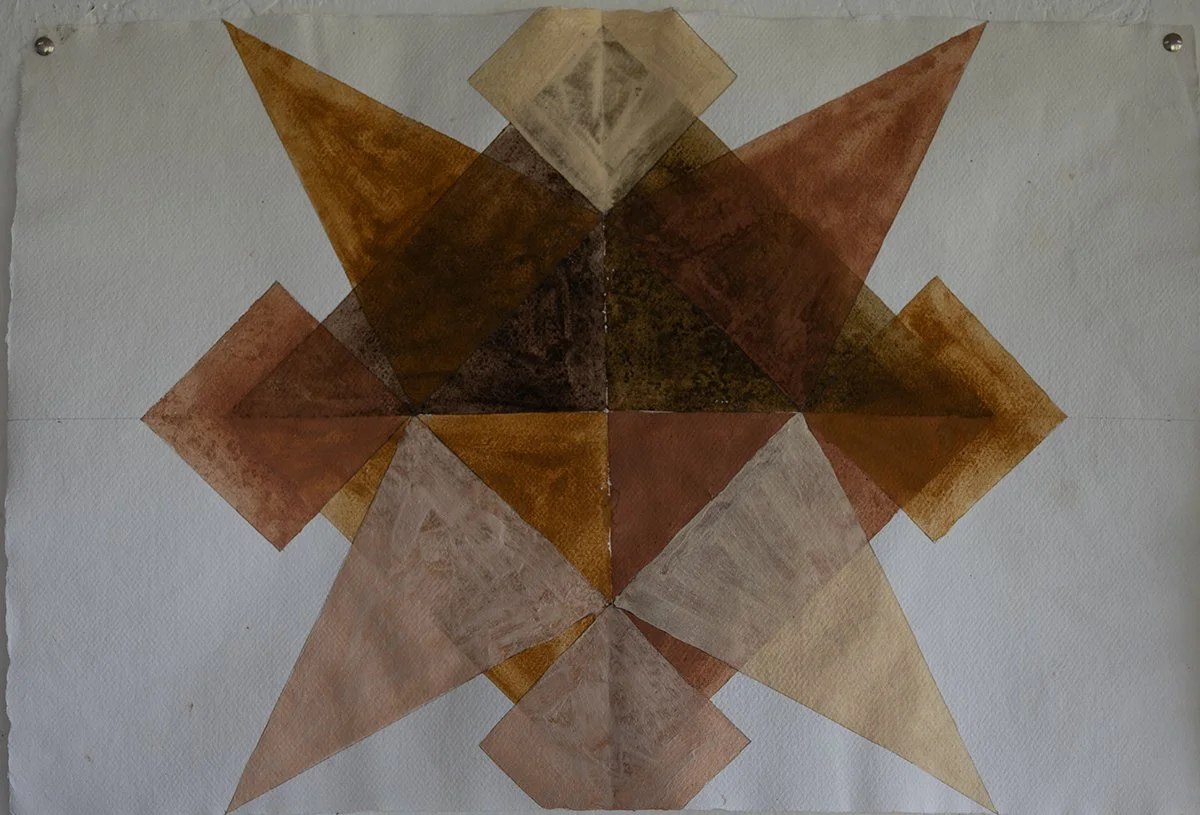 The sea was warm and shallow around my feet so I waded out to catch depth, where turquoise met ultramarine. I flipped onto my back to look at the sky. I closed my eyes to think about myself in the studio. A deep alizarin rose edged with gold filled a sightless vision. Its pattern was the same as that drawn on the Sea star’s face, a perfectly imperfect symmetry radiating from a five-point star arranged around a central circle. The pattern disappeared into an infinite space of fading yellow with a burning white line running along its centre. I was in outer-space looking back at the milky-way, suddenly out of my depth. I snapped open my eyes to find the beach line and saw that I was in exactly the same place I had been moments before. The tide had turned and the sea was making its way to land. I sloughed back through the returning tidal shallows, across the rippled surface of sand and collected the basket filled with Sea Stars and headed to the studio to confront myself.
